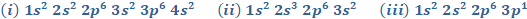 1.1. Explique razonadamente cuál de las siguientes configuraciones electrónicas corresponde a un estado excitado, cuál a un estado fundamental y cuál sería un estado prohibido.