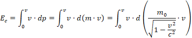 Esta definición obliga a reformular la expresión del momento lineal. Con él vamos a calcular la variación de energía cinética que experimenta un cuerpo desde el reposo (Ec = 0) hasta que se mueve con una velocidad próxima a la de la luz: