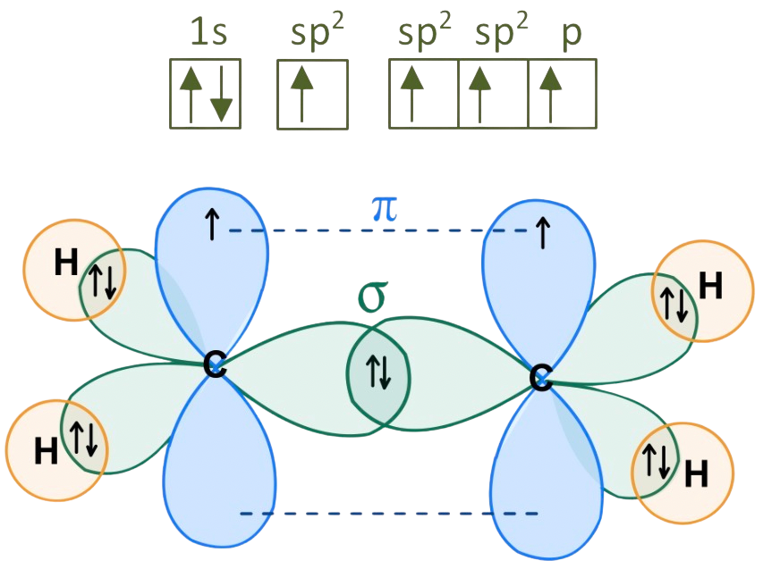 ). Al igual que dijimos en el caso del etano, como no es necesario reservar ningún orbital p sin hibridar, se hibridan todos los orbitales de enlace: