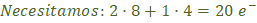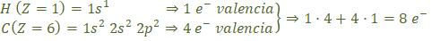 El hidrógeno para completar la capa solo necesita un electrón, así en total se necesitan:
