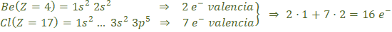 La estructura de Lewis del dicloruro de berilio es: