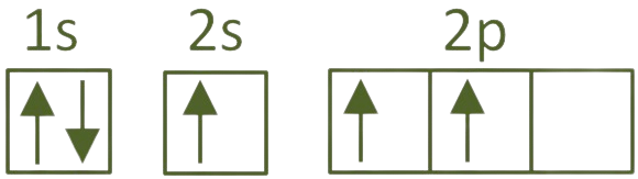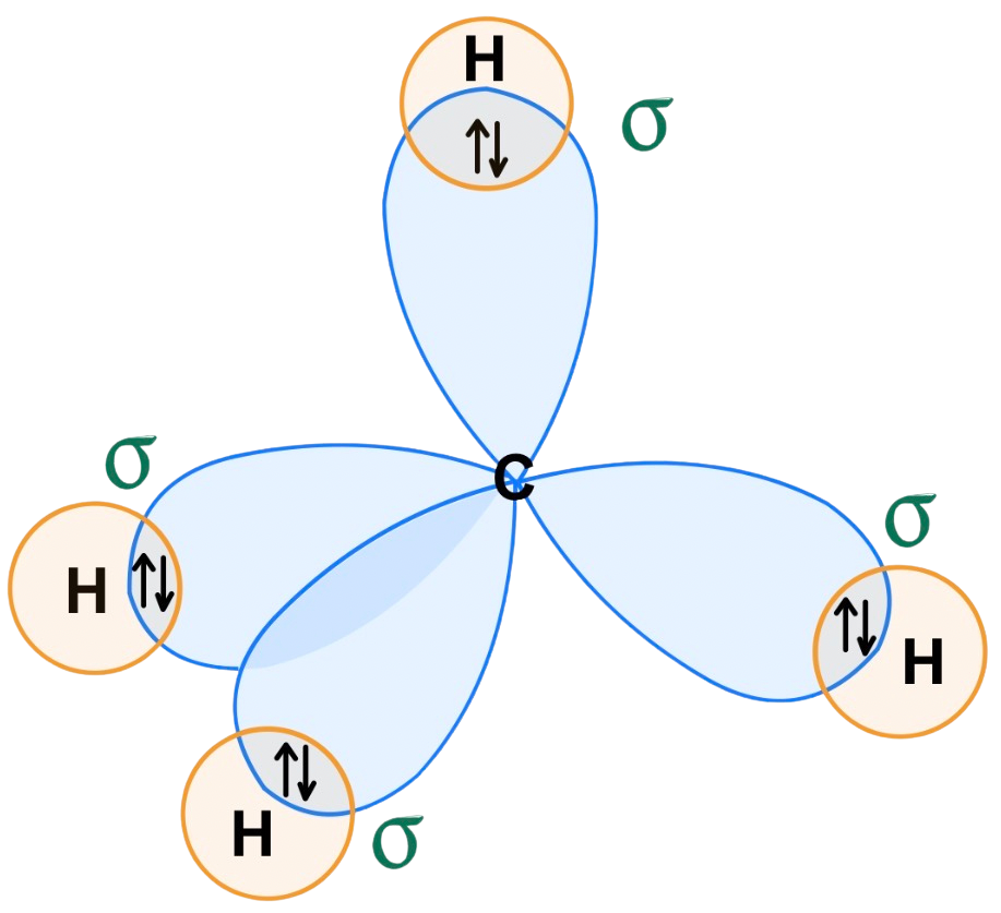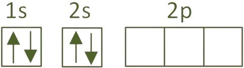 Pero normalmente forma cuatro enlaces y, para poder hacerlo, necesita promocionar un electrón del orbital 2s al 2p para tener otros tantos electrones desapareados. Como son orbitales del mismo nivel, necesita poca energía para poder hacerlo y lo compensa con creces a posteriori cuando forma los cuatro enlaces: