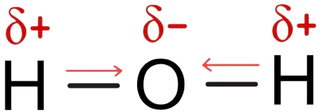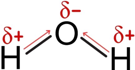 Por eso la molécula de agua es angular, con un momento dipolar que apunta hacia el átomo de oxígeno: