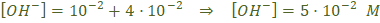 Como son dos solutos de la misma disolución, la concentración de ion hidroxilo será la suma de las concentraciones de ese ion que aporta cada sal: