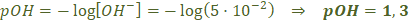 Con esta concentración calculamos el pOH y el pH de la disolución: