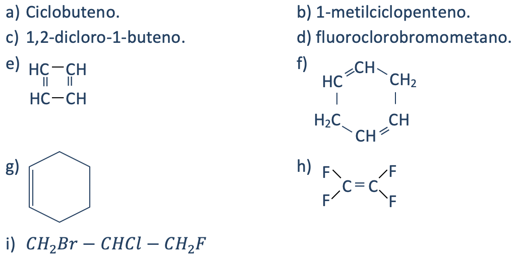 Ejercicio resuelto para formular y nombrar compuestos orgánicos con el grupo funcional alqueno y derivados halogenados