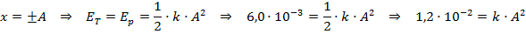 a) Cuando el cuerpo se encuentra en la posición de máxima elongación, , la energía cinética es cero y la energía potencial es máxima. En ese punto la energía total coincide, por tanto, con la energía potencial elástica: