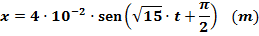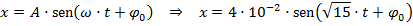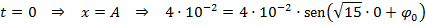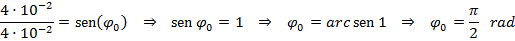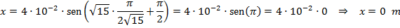 Por último, sabiendo que en el instante inicial se encuentra en la máxima elongación positiva, calculamos la fase inicial: