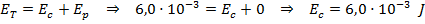 Como vemos la masa se encuentra en la posición de equilibrio, por lo que la energía potencial elástica es cero ya que no hay elongación, , y la energía cinética es máxima: