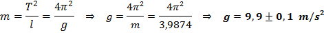 Finalmente, de la pendiente de la recta de regresión calculamos el valor de la aceleración de la gravedad: