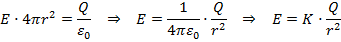 Ahora la esfera de Gauss contiene toda la carga del éste, por lo tanto, resulta que la intensidad de campo sería: