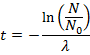 b) De la ley de desintegración podemos despejar el tiempo que pasa desde que tenemos los núcleos iniciales (N0) hasta que tenemos una cantidad determinada de núcleos (N):