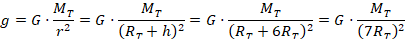 cuando está a una altura sobre la superficie de la Tierra igual a 6 veces el radio de ésta. Calcule: