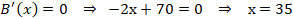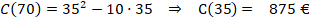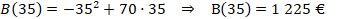 La empresa obtiene el máximo beneficio si produce diariamente 35 paraguas. En este caso tendría unos ingresos de 2 100 €, unos costes de producción de 875 € y unos beneficios de 1 225 €.