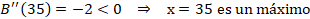 Para comprobar cuál de esos valores es un máximo, los sustituimos en la segunda derivada. Para que sea un máximo nos tendría que dar negativo: