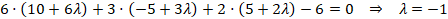 Ahora, calculamos el punto M, punto de corte de la recta y del plano. Para eso sustituimos las ecuaciones paramétricas de la recta en el plano: