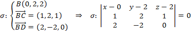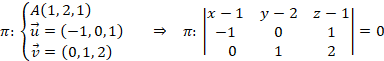 Al igual que hicimos en el apartado anterior, con uno de esos puntos y con los dos vectores calculados obtenemos la ecuación implícita del plano: