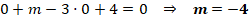 Ahora sólo nos queda que el punto A también pertenezca a este plano, por lo que, debe cumplir las ecuaciones del mismo. Lo sustituimos en la ecuación implícita y obtenemos el valor de m: