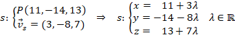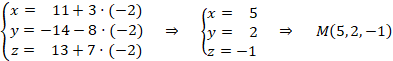 Con el valor del parámetro calculamos el punto sustituyéndolo en las ecuaciones paramétricas de la recta: