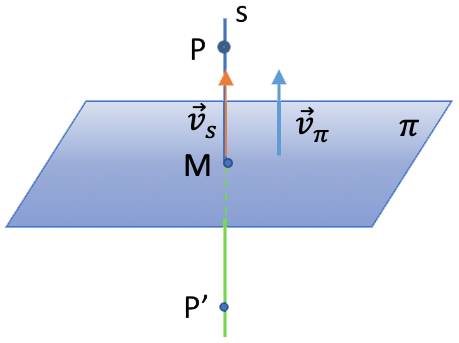 vamos a calcular una recta s, perpendicular al plano que pase por el punto P. Por lo tanto, el vector director de esa recta llevará la misma dirección que el vector normal del plano: