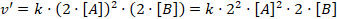 Si duplicamos la concentración de los dos reactivos, la nueva velocidad de reacción será: