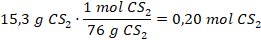 6.1. Lo primero vamos a calcular los moles de disulfuro de carbono y de hidrógeno: