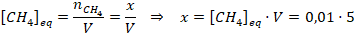 Como el enunciado nos da la concentración de metano en equilibrio, podemos calcular los moles que reaccionan: