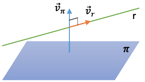 Vamos a comprobar si hay algún valor del parámetro que hace que el vector director de la recta y el vector normal del plano sean perpendiculares. La condición que cumplen los vectores perpendiculares es que su producto escalar es cero: