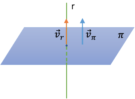 En este caso tenemos dos posibilidades, o que la recta y el plano sean paralelos, o bien, que la recta esté contenida en el plano: