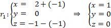 El punto de corte de las rectas es el punto P(1, 0, 0). Vamos ahora a calcular la distancia de este punto al plano:
