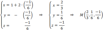 Con el valor del parámetro calculamos el punto sustituyéndolo en las ecuaciones paramétricas de la recta: