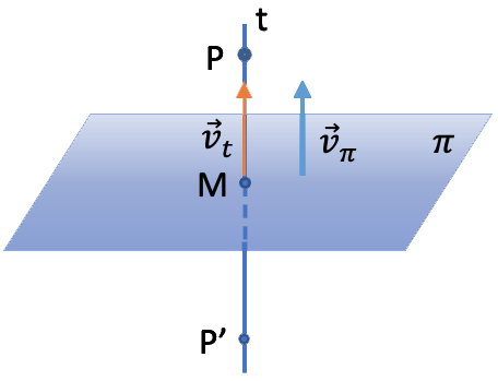 b) Para calcular el punto simétrico, primero vamos a calcular una recta que pase por el punto P y que sea perpendicular al plano, es decir, que el vector normal del plano será el director de la recta: